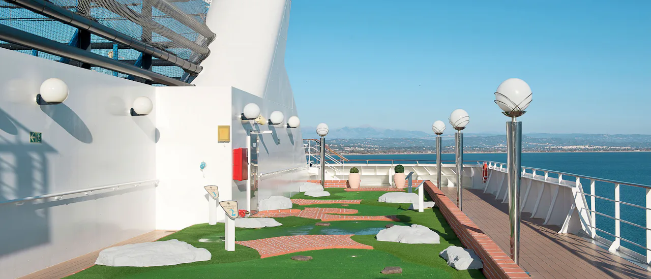 MSC Musica ofrece una amplia variedad de actividades para todos los gustos, desde momentos de relax hasta entretenimiento vibrante. Relájese junto a las piscinas y soláriums, manténgase activo con deportes como baloncesto y jogging, o descubra tiendas y experiencias a bordo.