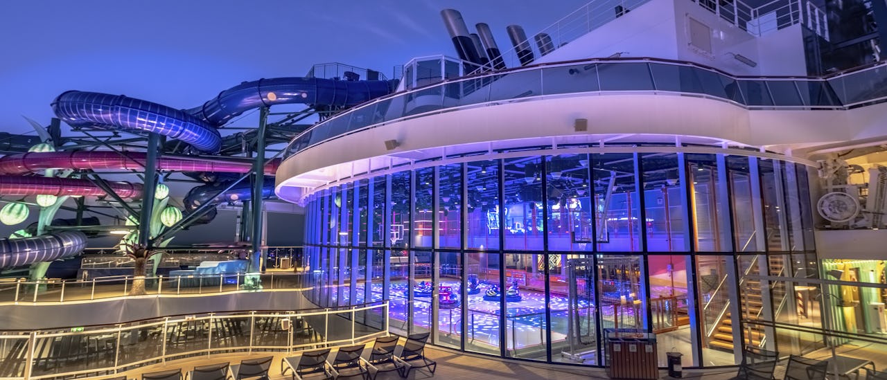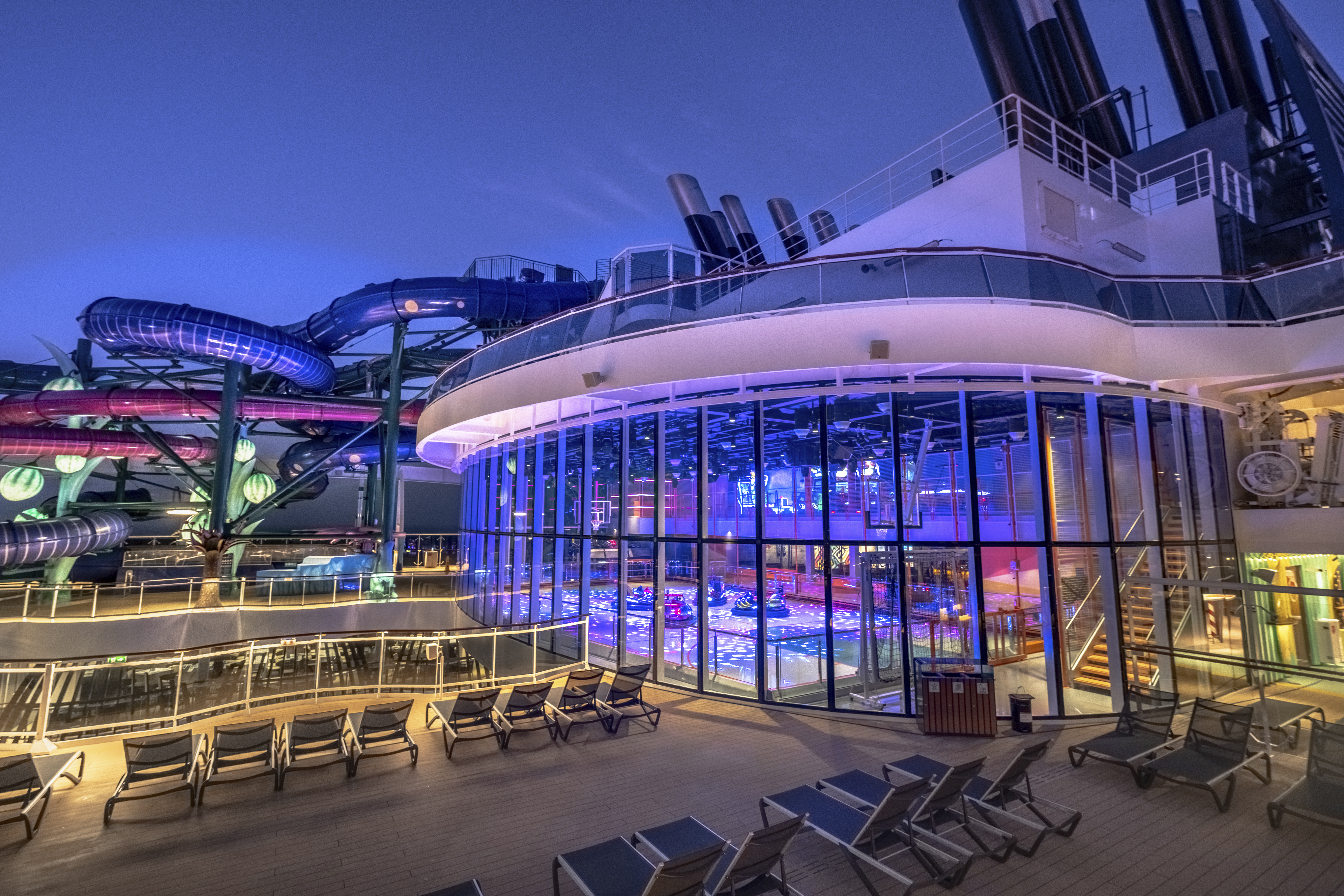Su característica forma hacen de este buque algo muy especial dentro de la flota. Los espacios públicos son más grandes que nunca, la oferta culinaria más variada y las zonas para familias más llenas de acción.