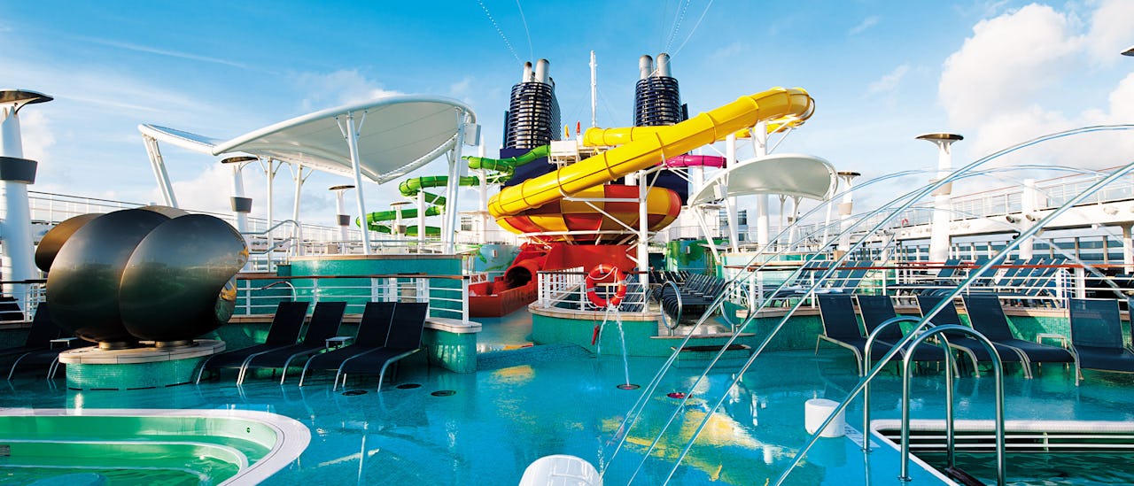Experimente las maravillosas vistas al mar desde una amplia gama de piscinas, spa y gimnasio en la parte superior del barco.