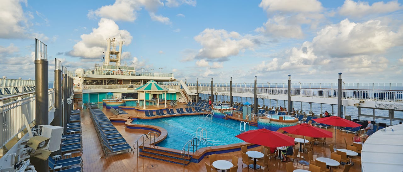 Experimente las maravillosas vistas al mar desde una amplia gama de piscinas, spa y gimnasio en la parte superior del barco